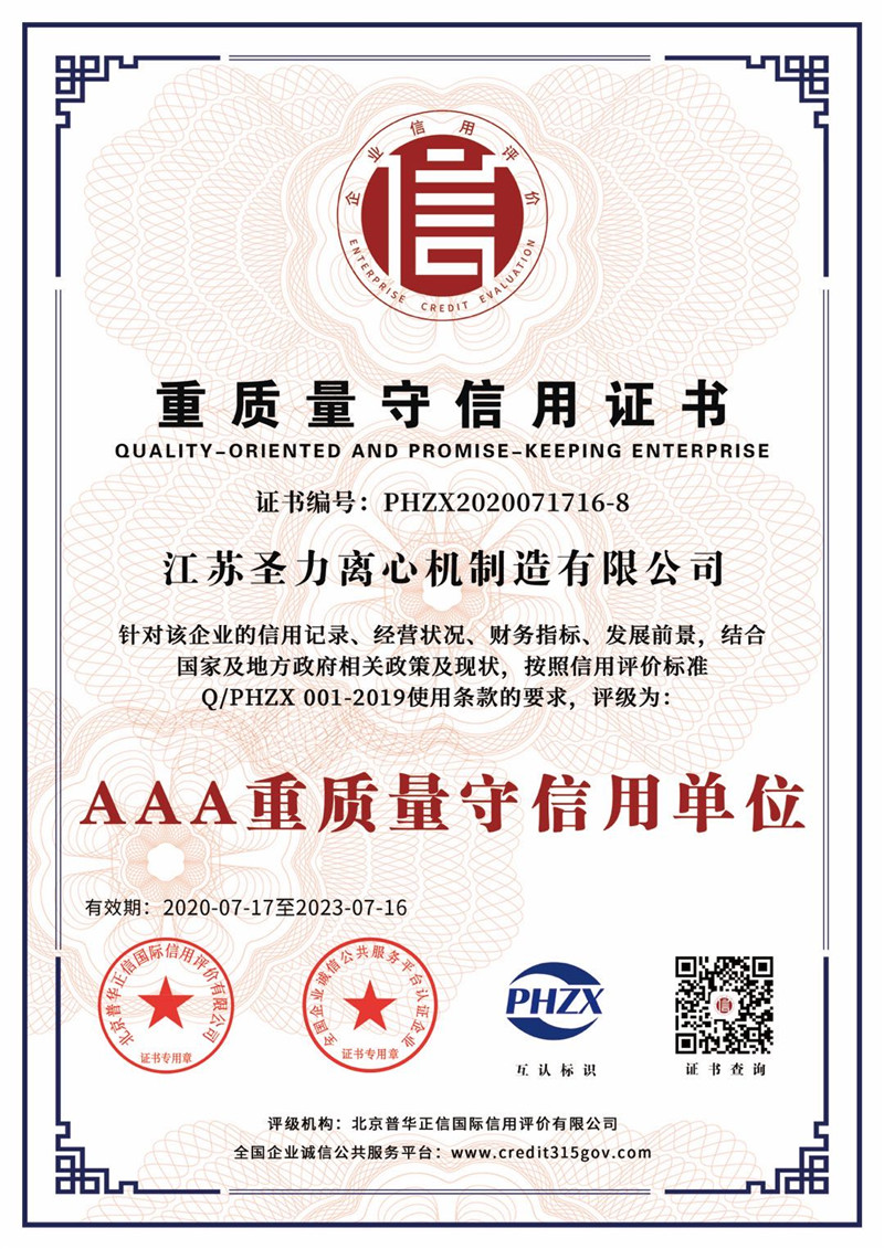 江蘇圣力離心機(jī)制造有限公司是國(guó)內(nèi)分離機(jī)械行業(yè)中主要的離心機(jī)生產(chǎn)企業(yè),對(duì)離心機(jī)的研究、設(shè)計(jì)、制造有多年的歷史,擁有齊全的設(shè)備、完善的檢測(cè)手段。公司已通過(guò)IS09000國(guó)際質(zhì)量體系認(rèn)證、ISO14001環(huán)境管理體系認(rèn)證、ISO45001:2018職業(yè)健康安全管理體系認(rèn)證和CE認(rèn)證,是江蘇省高新技術(shù)企業(yè),曾榮獲國(guó)家和地方多項(xiàng)榮譽(yù)稱號(hào)。